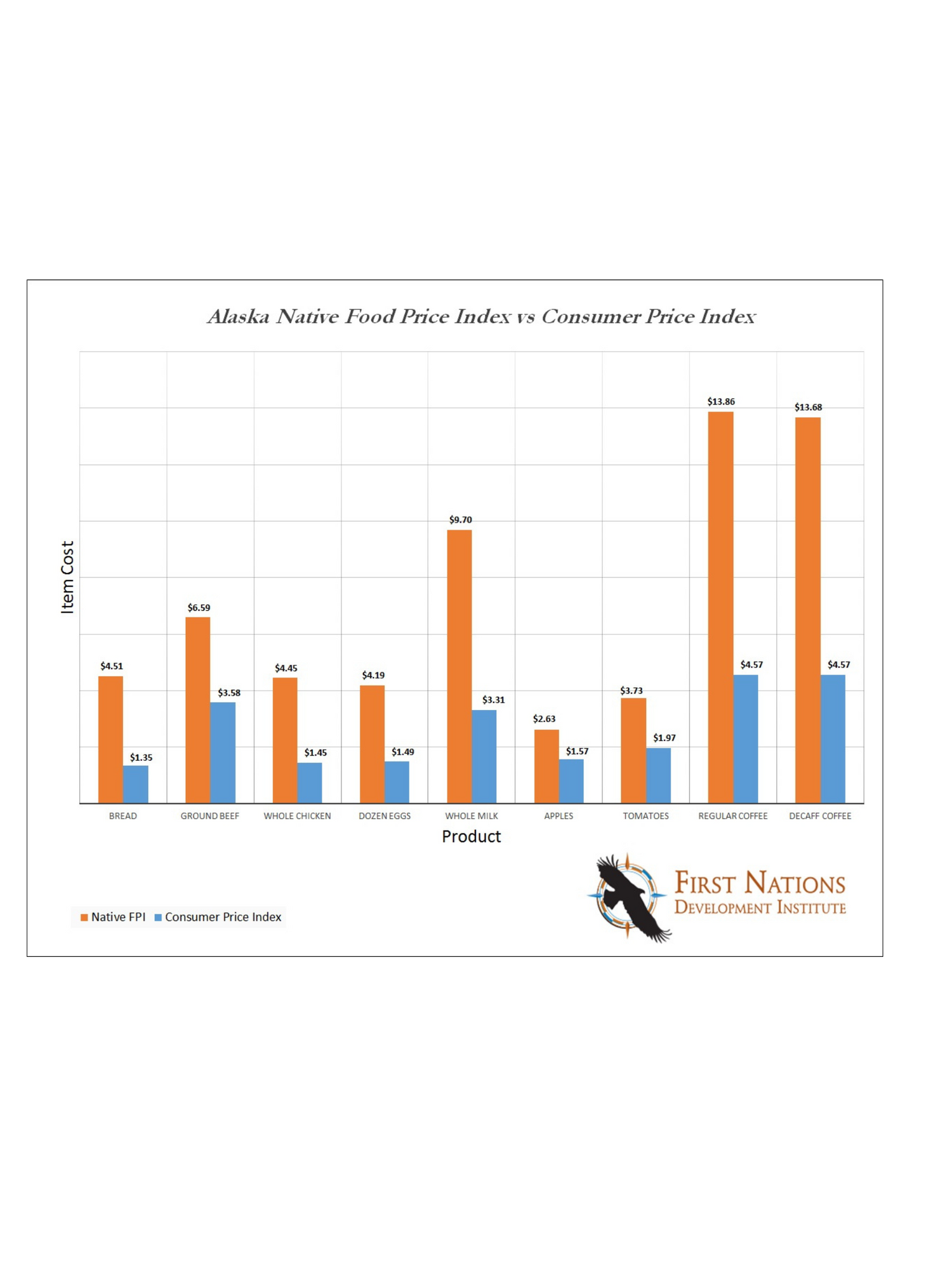 In 2017, in Alaska Native villages, shoppers paid $39.48 more for the same basket of food items than the average national consumer. The difference is striking, but before thinking the sticker shock only applies because of the distance to Alaska, consider that a shopper on a reservation in the Lower 48 pays $7.51 more than the national average.